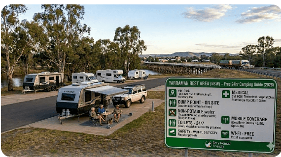 Bohena Creek Rest Area is a free public facility maintained by Transport for NSW. Its continued availability for overnight stays depends entirely on travellers using it responsibly. Grey nomads have a well-deserved reputation as good stewards of these locations — and that reputation needs to be protected.